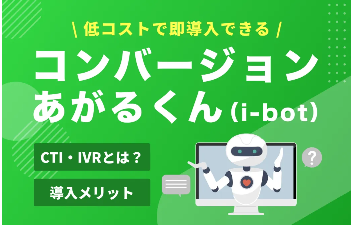 「コンバージョンあがるくん」とは、「低コストとシンプルな機能性」をコンセプトに開発された、「完全成果報酬型のチャットボットIVR(自動電話受付)システム」で、中小規模のサイト運用者でも手軽に導入できるコンバージョン向上ツールになります。